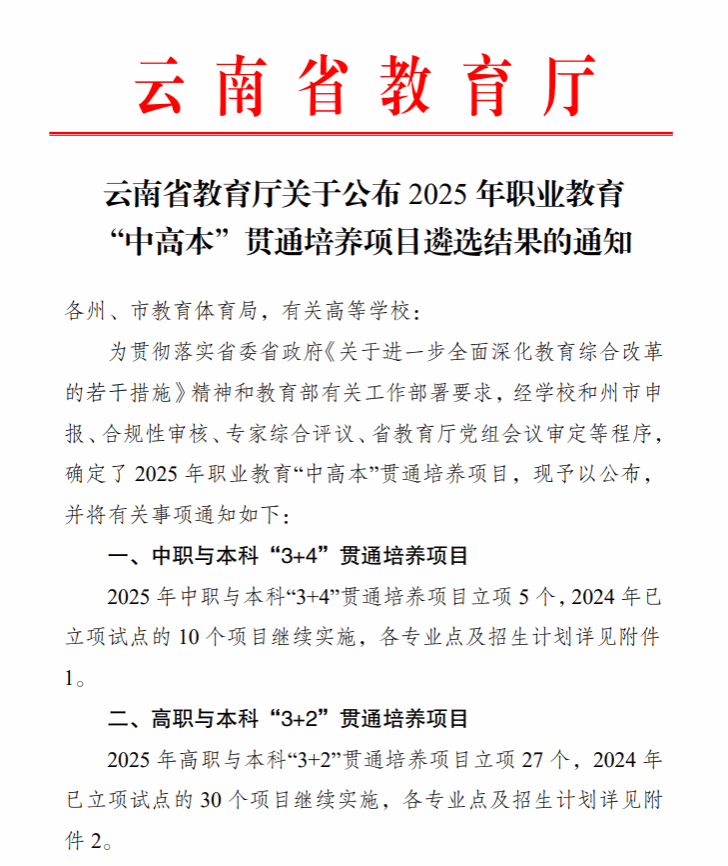6月3日,云南省教育厅公布了2025年职业教育“中高本”贯通培养项目遴选结果,学院“有色金属智能冶金技术”专业与红河学院“冶金工程”专业高本贯通培养项目成功获批。