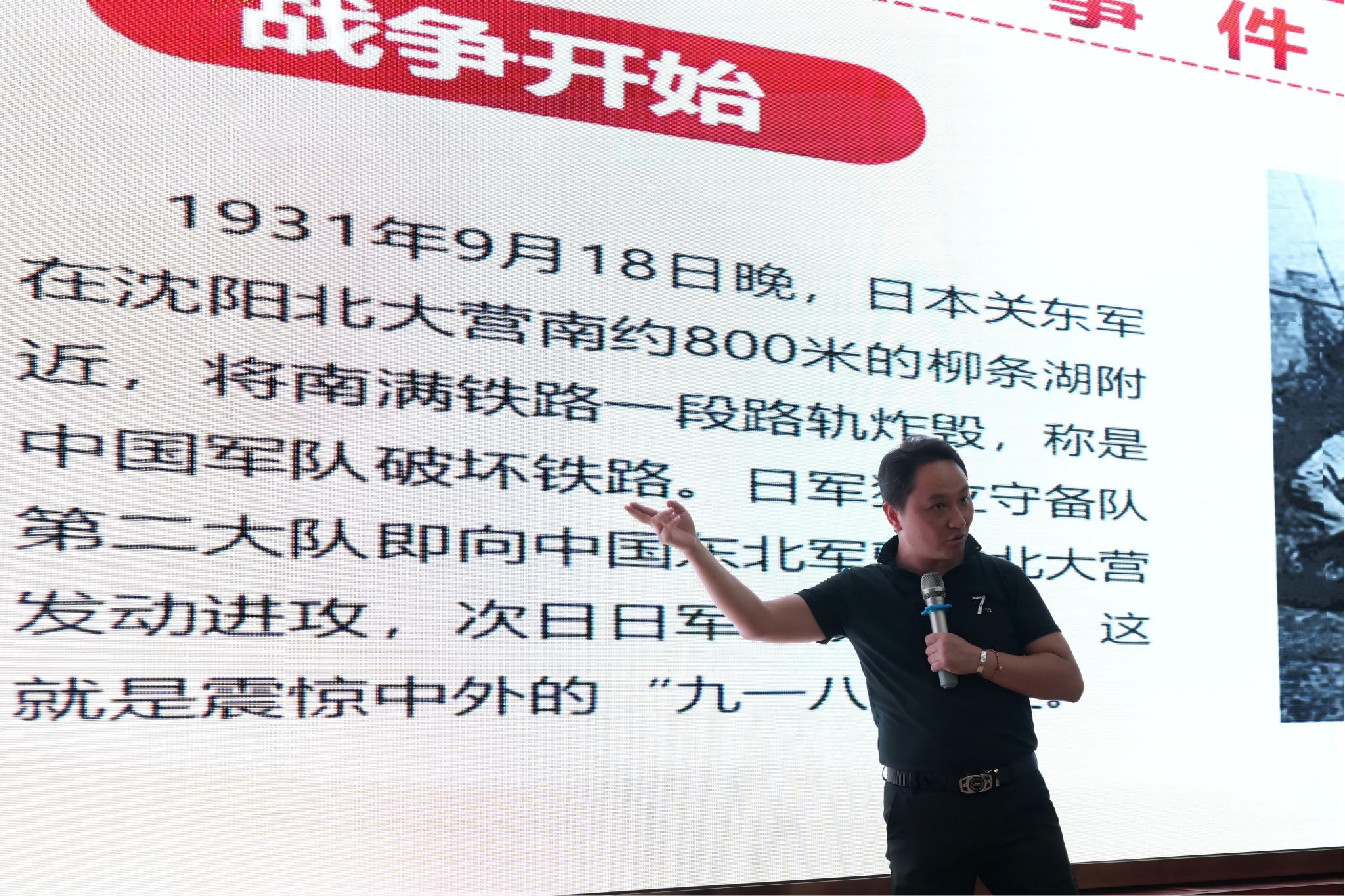 刘一熹通过丰富的历史资料和生动的叙述,系统梳理了“九一八”事变的背景、经过及其深远历史影响,带领同学们重回那段烽火岁月,引导学生以史为鉴、勿忘国耻,在厚植爱党爱国之情的同时激发强国复兴之志。他深情讲述了杨靖宇、赵一曼、赵尚志等抗日英烈不畏牺牲、奋勇抗敌的感人事迹,号召广大青年学子继承先烈遗志,勿忘国耻,以史为鉴、奋发图强,以实际行动践行爱国主义精神,肩负起振兴中华的时代使命。