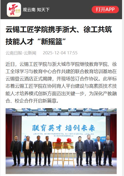 云南日报:云锡工匠学院携手浙大、徐工共筑技能人才“新摇篮”