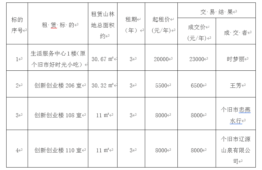 一、租赁标的交易结果: