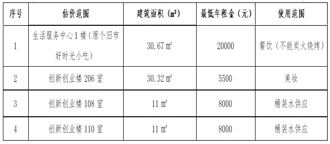 3.公开招租设最低年租金,竞租人从租赁底价开始竞价,加价幅度为500元/次,上不封顶。报价延时时间为2分钟,2分钟内无人再次竞价,以最高竞价者为承租人。
