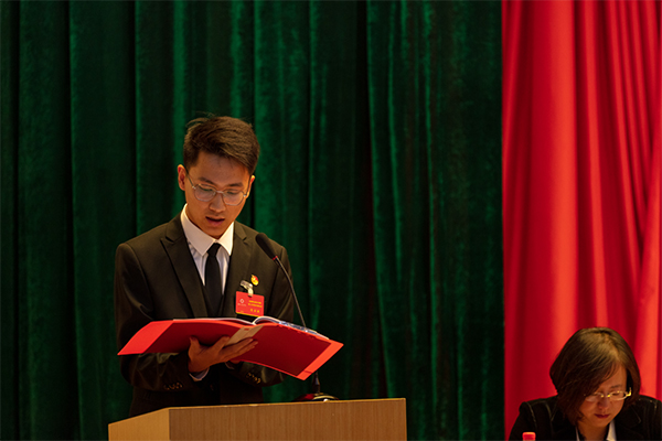 团市委学校部部长葛菲发表讲话,对本次学代会的胜利召开表示热烈的祝贺,高度赞誉了学院青年学生做出的突出贡献,对BB贝博艾弗森官方网站学生会和青年学生提三点希望:一是坚定理想信念,不忘初心跟党走;二是树立大局意识,竭诚服务青年;三是加强自身建设,有效组织青年。