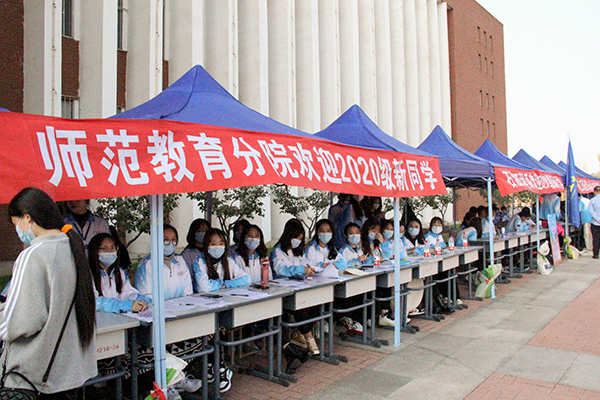整体的迎新工作在学院图书馆一楼拉开帷幕,各分院及相关部门在图书馆外搭好接待棚,各分院的辅导员也早早等候在图书馆外,迎接来自五湖四海的新同学,报到场面气氛热烈而又井然有序。