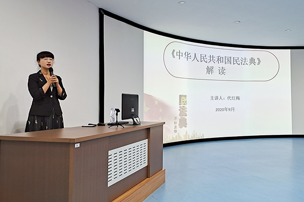 代红梅老师围绕《民法典》的颁发意义、《民法典》编撰历程和《民法典》的热点内容三部分进行专题讲解。报告深入浅出、贴近实际、重点突出,阐释准确全面,进一步加深大家对民法典的认识与理解。