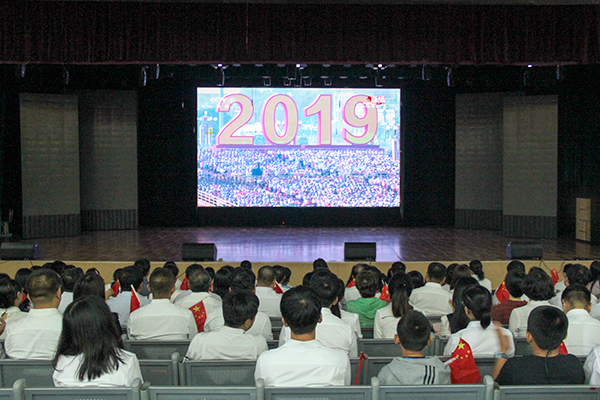 其次是组织观看了国庆阅兵式及爱国主义影片。10月1日上午9时,由学生工作处、团委牵头组织,学院党政领导班子、各支部书记、副书记、辅导员及学生工作处联合党支部全体成员于学院文化中心三楼集中观看了国庆阅兵式和群众游行;14:30,在博远楼103室集中观看爱国主义影片——《开国大典》。此举旨在让同学们深刻认识到新中国成立七十周年国家发生的翻天覆地的变化,大力培养同学们的爱国情怀与报国之志。