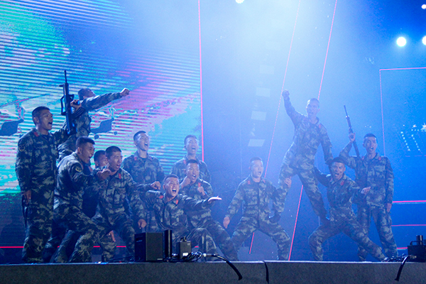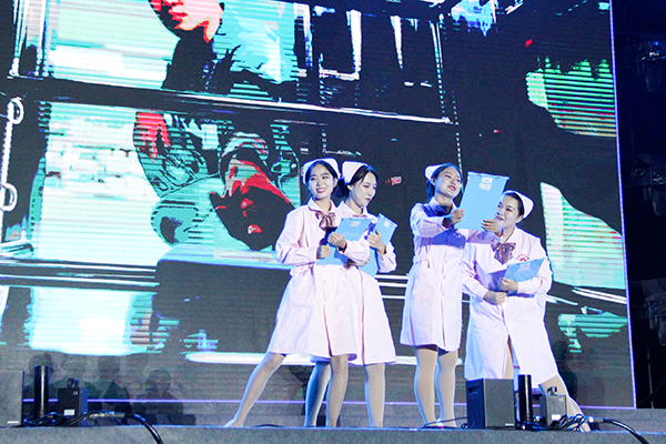 军训教官为同学们带来了军体拳等表演,体现勇敢顽强的战斗作风,台下师生无不为之鼓掌、为之动容;女声二重唱《锦绣前程》以经典的旋律直抵大家心灵;情景舞蹈《天使在你身边》诠释着“救死扶伤,大爱无疆”的医护精神;歌曲联唱《蓝莲花》、《小酒窝》、《梦想天空分外蓝》用清秀典雅、热情奔放的歌声,唱出了欢快喜庆、华美浪漫的韵律;舞蹈《采茶舞》以跳跃活泼的乐曲和轻盈优美的舞姿,使人联想起风和日丽的茶乡春天的生动情景;现代京剧《沙家浜》选段——《祖国的好山河寸土不让》以国粹的方式唱响爱国精神;男声独唱《最美的歌儿献给妈妈》用朴实无华的歌声,倾诉了对祖国和对党的感激之情;舞蹈《沂蒙颂》生动的展现出新时期、新红嫂的新形象;机电工程系的朗诵《我的热爱大声说出来》,歌颂了共产党人开天辟地、敢为人先的首创精神和矢志不渝、开拓创新的奋斗精神;整场晚会在合唱《抗日军政大学校歌》、《我和我的祖国》中落下帷幕。