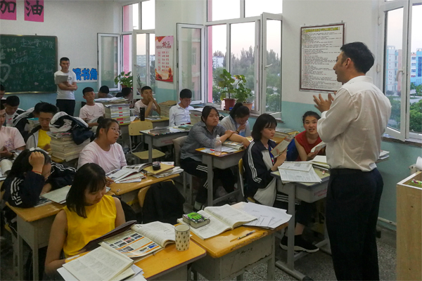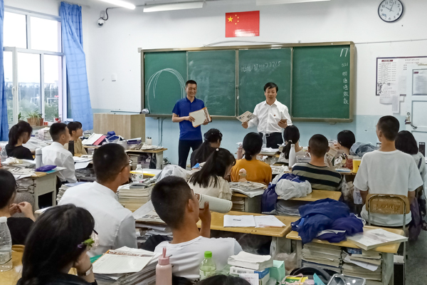 到达新疆后,得知今年进校宣传手续要求更加严格,需要由省教育厅进行相关接洽工作。张院长第一时间联系学院和两地教育厅多个部门,兵分两路、分工协作。高喜文副主任留在乌鲁木齐负责联络联络办理相关必要手续。张院长带领其他工作人员直奔宣传学校,尽最大努力提高工作效率。经多方沟通协调,所有进校手续在21日中午办理妥当。为节省时间,张院长一行直接携带进校手续照片来到第一所学校——伊宁市第四中学,与校长面对面交流、发放简章,之后立即赶往察布查尔锡伯自治县高级中学。大家走进教室,与近300名学生进行面对面宣传、交流、答疑,现场气氛热烈,学生响应度很高。