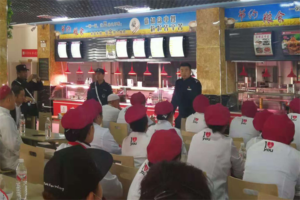 11月10日下午在第一食堂,由安全保卫处和后勤管理处联合组织三产重点单位人员进行消防知识技能培训。培训由安全保卫处胡鹏处长主持。
