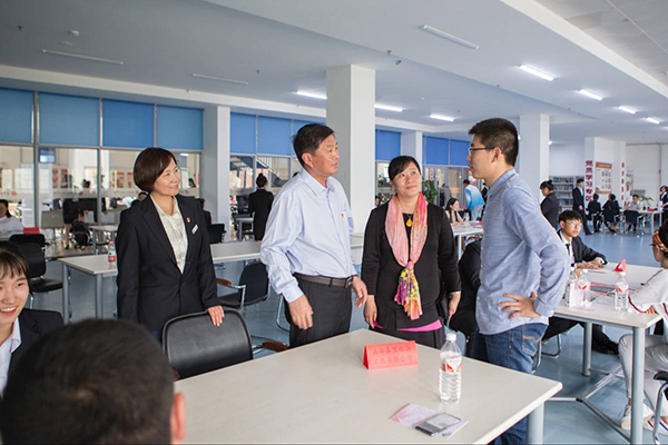 学院党政领导高度重视这次校企双选会的针对性和实效性,会前从各个方面提出了明确要求和指导意见。下午,学院党委书记王正东、党委副书记李兵来到图书馆招聘会现场,不时向各企业代表询问招聘情况,向学生询问简历投递情况,并与企业代表就人才培养情况、校企合作进行诚挚的探讨与交流。同时强调指出,这种模式完善新颖、规模较大的校企双选会,非常有利于校企合作办学、合作就业、合作育人、合作发展,效果很好,今后一定要继续坚持和不断完善。企业代表高度评价了学院的办学水平,对于前来应聘的学生也给予了充分肯定和好评,同时表示,要秉承“做一流企业,引一流人才”理念,借助学院这个平台,为大学生提供更多更好的岗位。