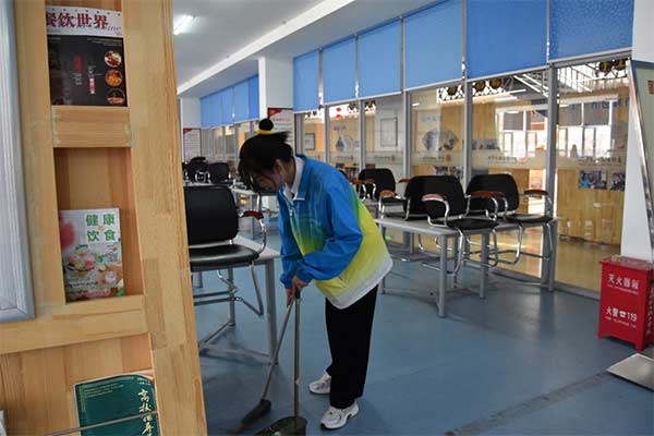 随后按照所分派的区域、库、室开展整理图书、擦书架、抹书桌、拖地等义务劳动。同学们分工明确,有条不紊、干劲十足,用提前准备的抹布,认真仔细地清理书架上的灰尘;整理书架上没有放整齐的图书;对角落处和细微的垃圾、杂物都进行了彻底清理,不留卫生死角。他们的身影出现在图书馆的各个角落,虽然累在其中,但也其乐融融。