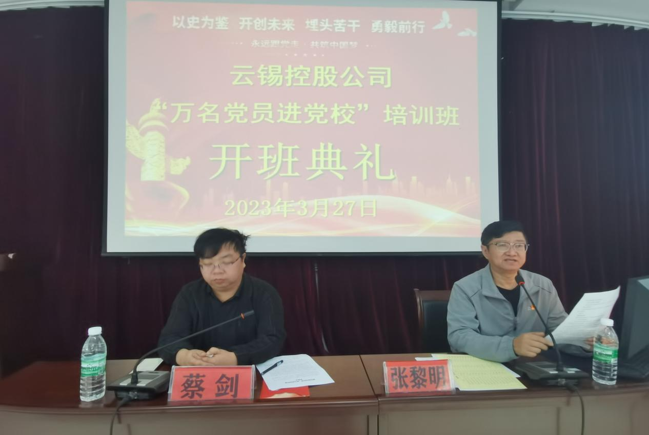 根据控股公司《关于开展深入学习宣传贯彻党的二十大精神“万名党员进党校”培训的通知》要求,云锡党群工作部,于2023年3月27日在云锡党校举办了“控股公司深入学习宣传贯彻党的二十大精神“万名党员进党校第3期培训班”开班典礼,云锡党校培训部主任蔡剑同志参加了“万名党员进党校培训班”开班典礼,并作动员讲话。