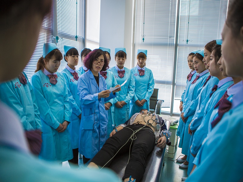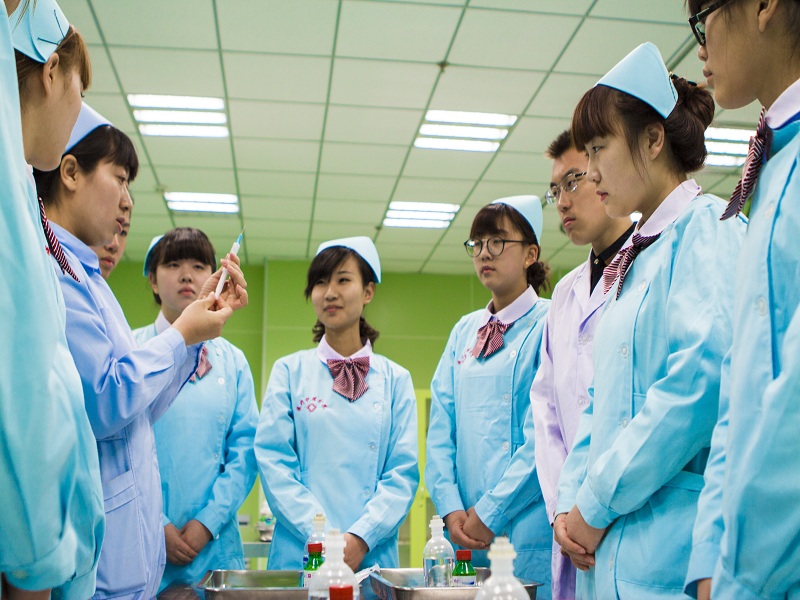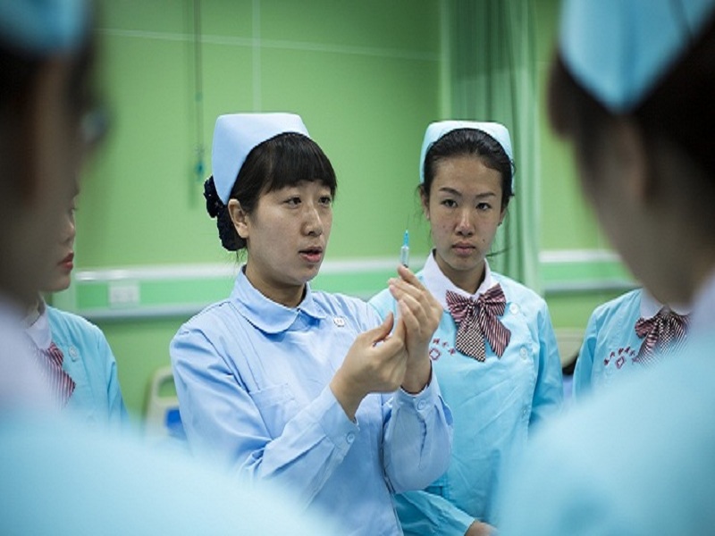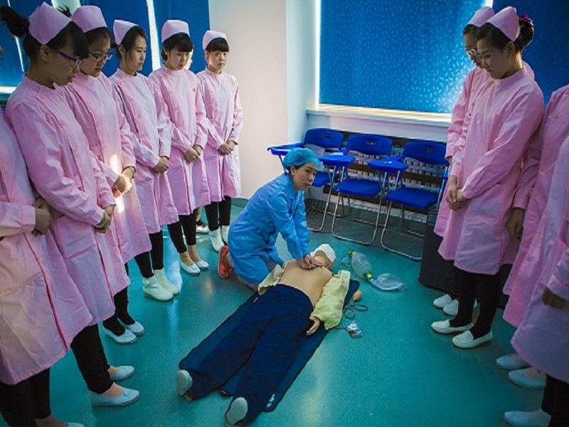 医疗护理教师对学生进行实训指导