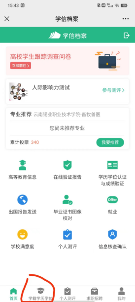 1.关注公众号“学信网”,绑定学信网账号,点击“学信账号”,查看学籍学历信息