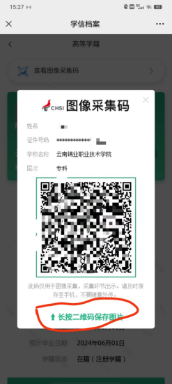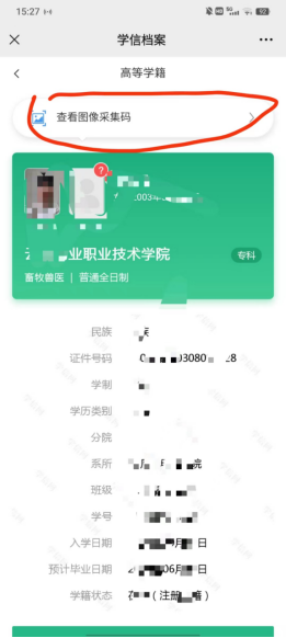 3.选择学籍,查看对应采集码并保存图片