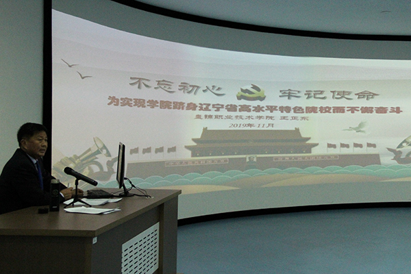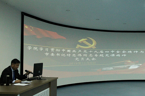 2019-11-0511月5日13:30,学院召开学习宣传贯彻中国共产党十九届四中全会精神和市委书记付忠伟“不忘初心、牢记使命”主题教育专题党课精神大会,学院党委书记王正东专题传达四中全会精神和付...