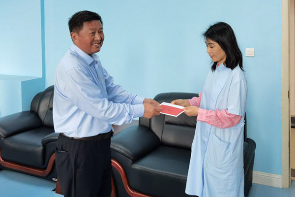 2020-09-099月7日下午,在第36个教师节来临之际,学院党委书记王正东、工会主席刘艳到图书馆看望大病住院教职工张献玉老师,表达了学院的关心、慰问和节日祝福。 王正东书记详细询问了张献玉老...