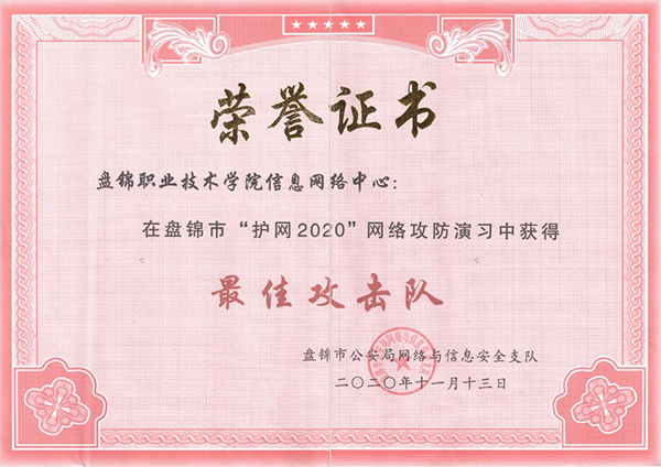 2020-12-02受盘锦市公安局网络与信息安全支队邀请,学院信息网络中心技术团队参加了盘锦市“护网2020”网络攻防演习,经过10天鏖战,最终以第一名的战绩荣获网络攻防演习最佳攻击队。 此次演习...