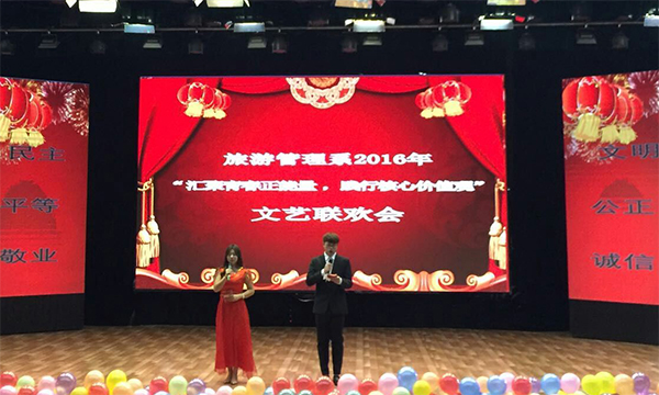 12月15日10点18分旅游管理系 “汇聚青春正能量,践行核心价值观”文艺联欢会在学院文化中心三楼隆重举行,学院党委副书记李兵,团委副书记蔡志远、学生工作处副处长张春波、学生工作...