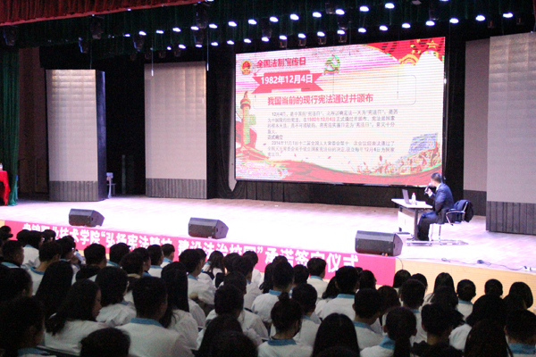 2018-12-05为进一步增强学生的法治观念,营造和谐校园氛围,在第五个国家宪法日到来之际,学院于12月4日下午1:30在文化中心三楼演播厅举行宪法宣讲活动,同时举行“弘扬宪法精神 建设法治校园...