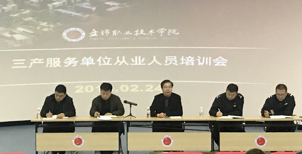2019-03-012月24日,后勤处与安全保卫处联合在博远楼103会议室组织召开了2019年三产服务从业人员培训大会。学院副院长张洪福、安全保卫处处长胡鹏、副处长邵继亮、后勤处副处长李强出席会议,...