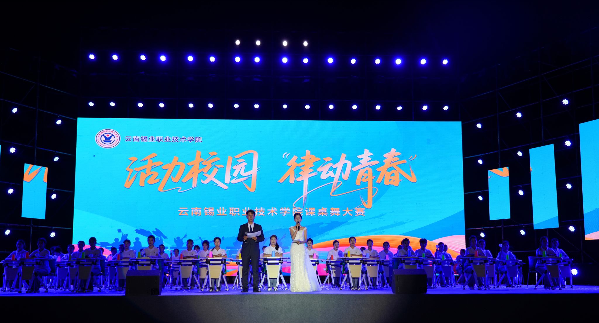 为全面加强美育工作,坚持以美育人、以文化人,丰富校园文化生活,9月28日晚,学院举行“活力校园 律动青春”课桌舞大赛,4300余名师生齐聚现场。《浪漫樱花》《破茧》《星辰大海》《夜空中最亮的星》等节目,以饱满的情绪、整齐的动作和富有张力的表演,展现出青年学子勇于突破、追逐梦想的青春姿态;《筑梦·东方》《以青春之名,爱我中华》将爱国情怀融入每一次击掌与转身,用肢体语言深情表达对祖国的热爱与赞美;《次仁拉索》《...
