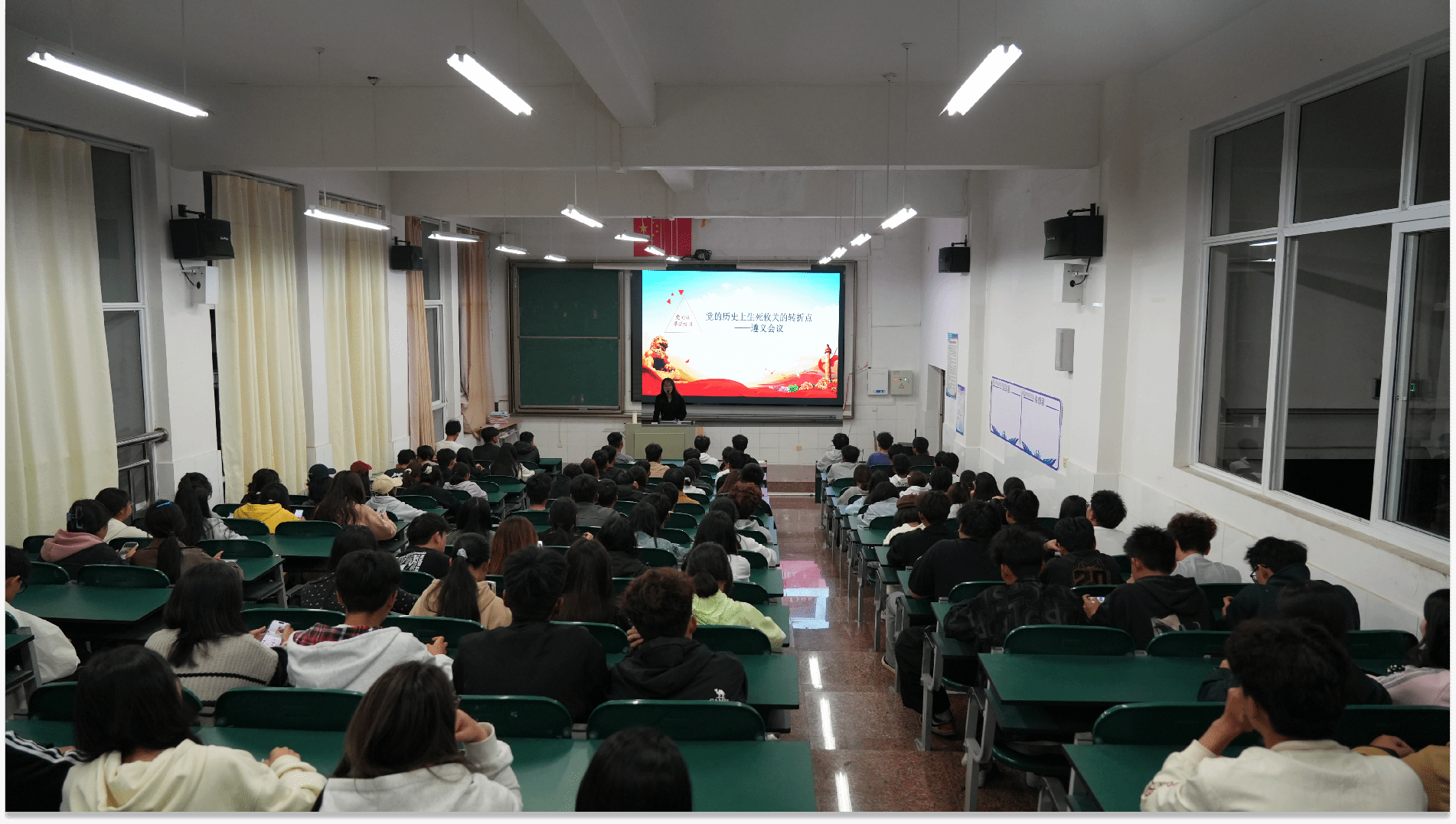 10月20日,学院在博学楼522开展“党的故事”进校园活动,思政课教师段颖带领130余名青年学子重温遵义会议历史、弘扬遵义会议精神。