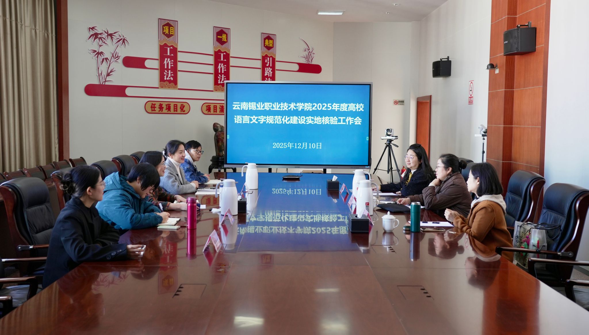 12月10日,由红河州教育科学研究院高级教师、国家级普通话水平测试员张耀华带队的省教育厅专家组,到学院开展2025年度高校语言文字规范化建设实地核验。