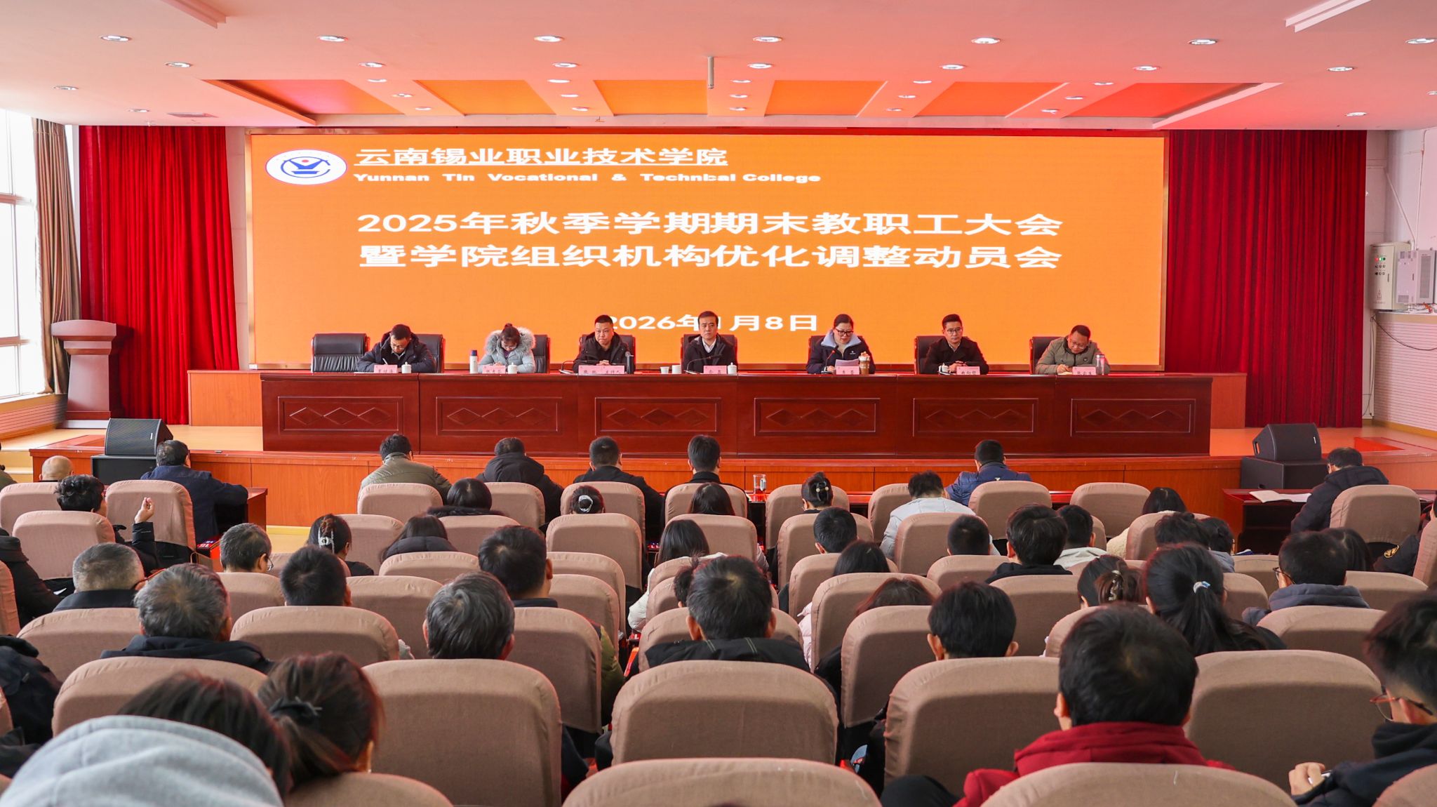 1月8日,学院召开2025年秋季学期期末教职工大会暨组织结构优化调整动员会,全面启动新一轮深化改革。学院党委书记俞鑫出席并讲话。
